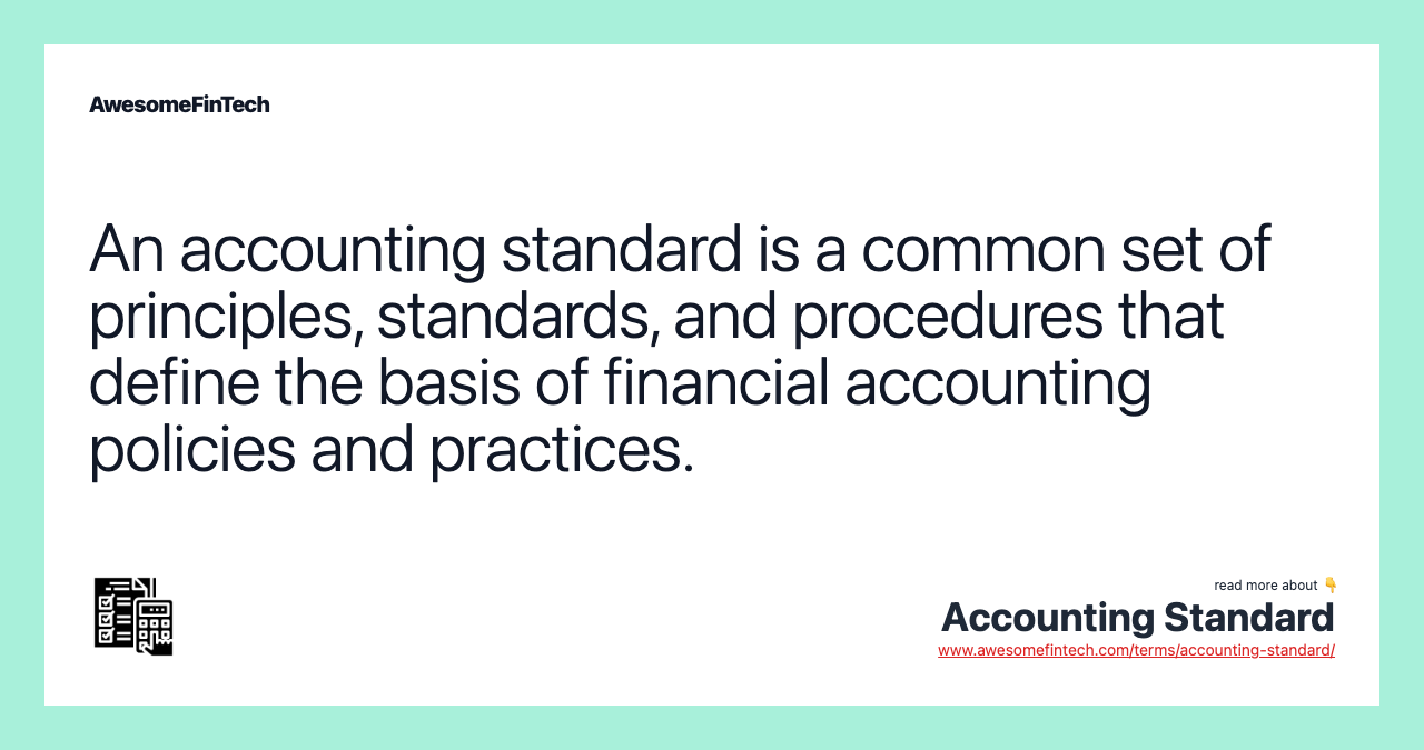 An accounting standard is a common set of principles, standards, and procedures that define the basis of financial accounting policies and practices.