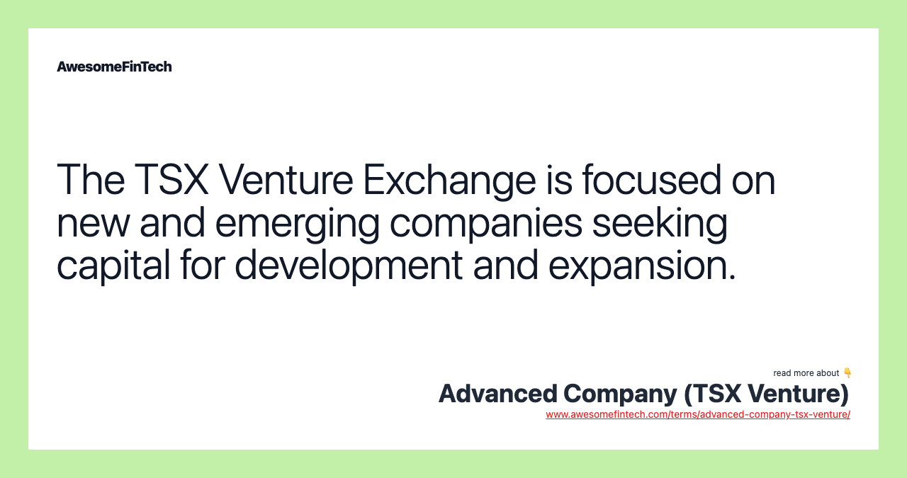 An advanced company is a public corporation listed on Canada's TSX Venture Exchange that satisfies the exchange's Tier One listing standards.