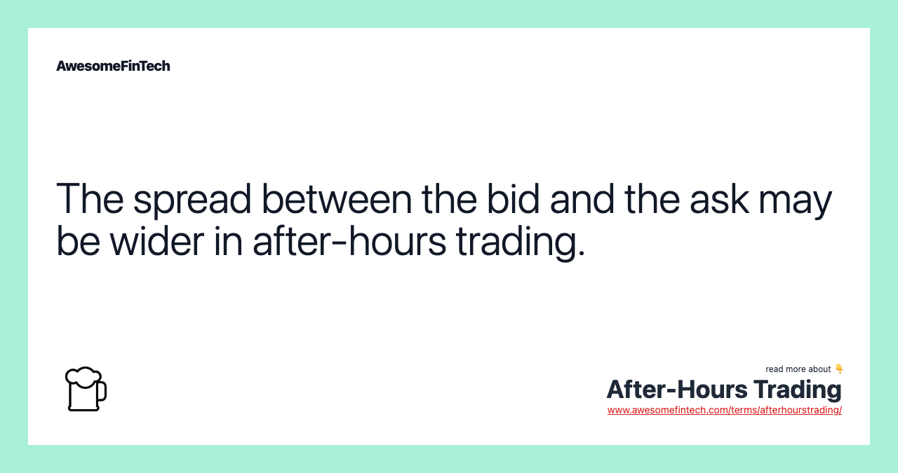 Not only does volume sometimes come at a premium in the after-hours trading sessions but so does price. It is not unusual for the spreads to be wide in the after-hours. The spread is the difference between the bid and the ask prices. Due to fewer shares trading, the spread may be significantly wider than during the normal trading session.