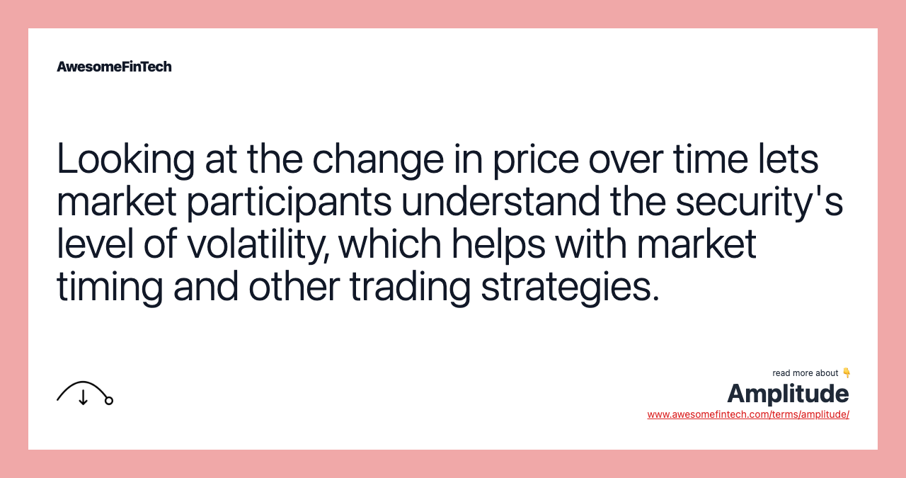 The amplitude allows for an estimation of the volatility of a particular security. The larger the amplitude, either positive or negative, the more volatile the security is judged to be. The level of volatility can also denote the amount of risk present in a particular investment.