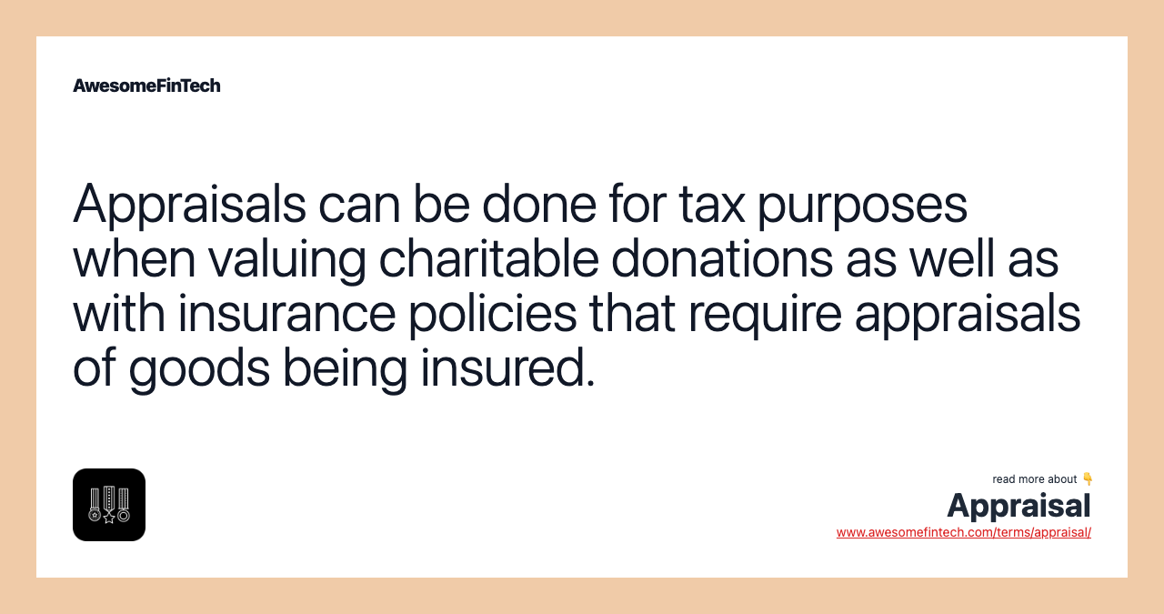 An appraisal is a valuation of property, such as real estate, a business, collectible, or an antique, by the estimate of an authorized person. The authorized appraiser must have a designation from a regulatory body governing the jurisdiction of the appraiser. Appraisals are typically used for insurance and taxation purposes or to determine a possible selling price for an item or property.
