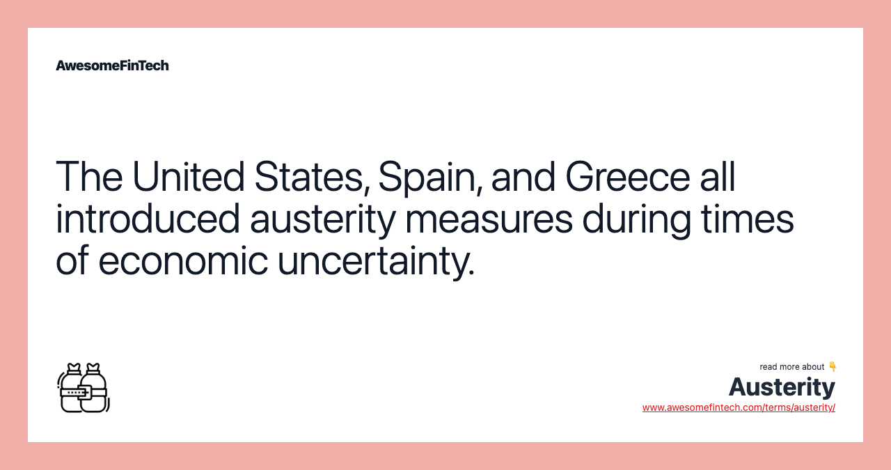 For example, the global economic downturn that began in 2008 left many governments with reduced tax revenues and exposed what some believed were unsustainable spending levels. Several European countries, including the United Kingdom, Greece, and Spain, turned to austerity as a way to alleviate budget concerns.