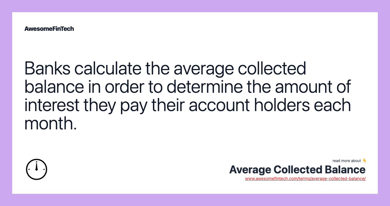 Banks use the average collected balance to determine the amount of interest they pay each month to their account holders. Collected funds are those funds that have cleared the bank and represent the available portion of the bank deposit. Collected funds earn interest, while uncollected funds do not earn interest.