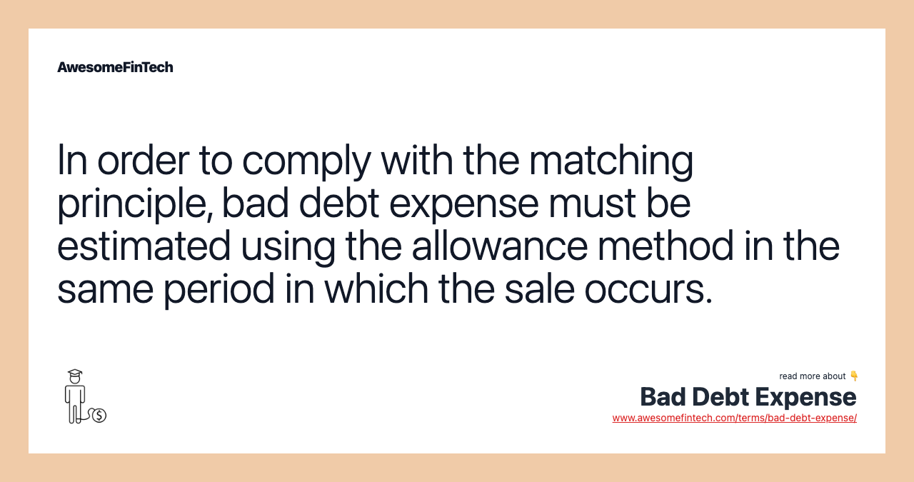 For this reason, bad debt expense is calculated using the allowance method, which provides an estimated dollar amount of uncollectible accounts in the same period in which the revenue is earned.