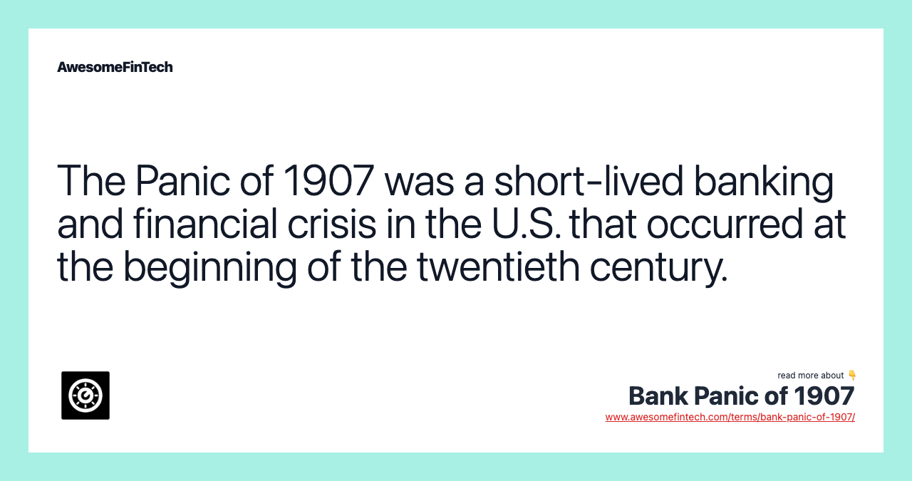 The Bank Panic of 1907 was a short-lived banking and financial crisis in the U.S. that occurred at the beginning of the twentieth century.