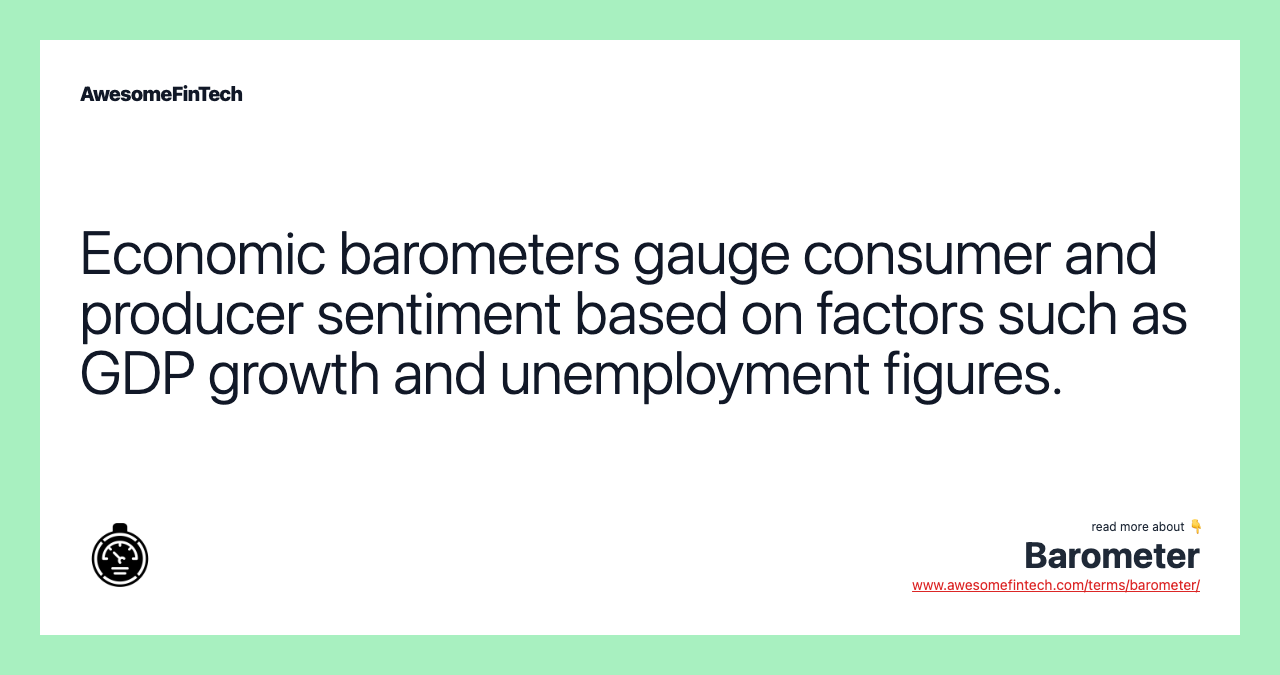 Barometers are data points that represent trends or sentiment in the market or the general economy. The Standard & Poor's 500 Index and the Dow Jones Industrial Average (DJIA) serve as barometers of stock market performance and are often used as barometers for the U.S. economy as a whole.