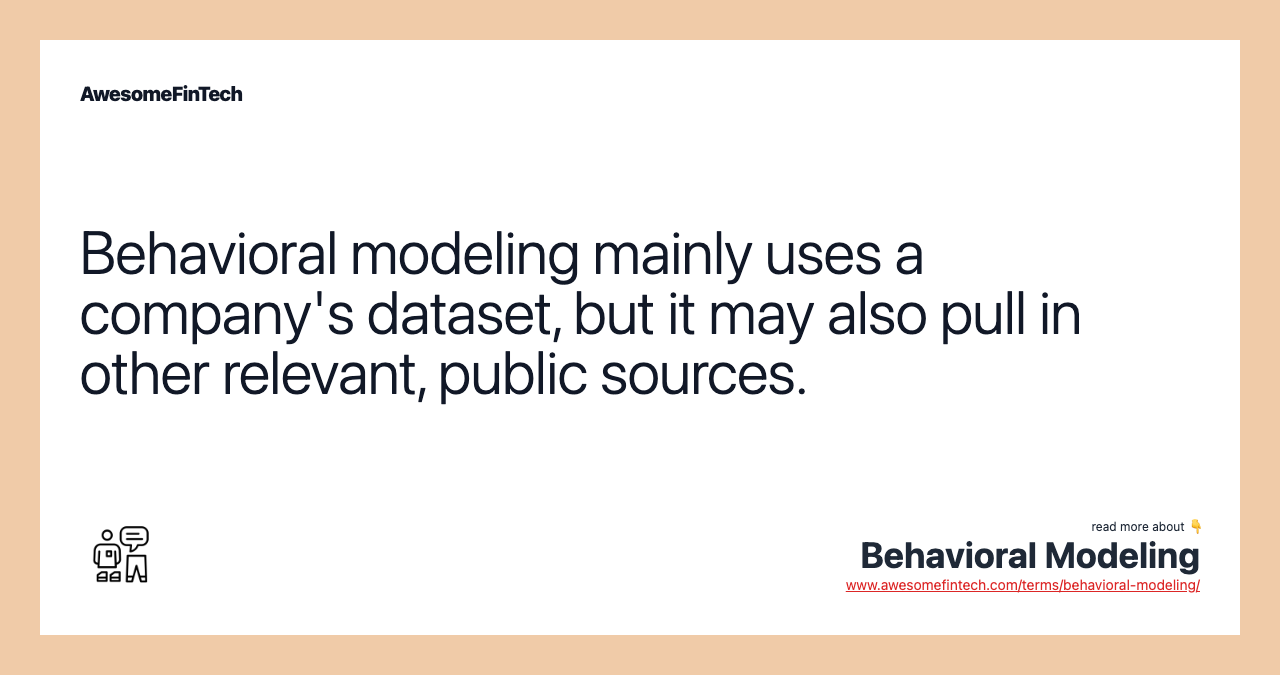 Behavioral modeling is an approach used by companies to better understand and predict consumer actions. Behavioral modeling uses available consumer and business spending data to estimate future behavior in specific circumstances. Behavioral modeling is used by financial institutions to estimate the risk associated with providing funds to an individual or business and by marketing firms to target advertising. Behavioral economics also relies on behavioral modeling to predict behaviors of agents that fall outside of what would be considered entirely fact-based or rational behavior.