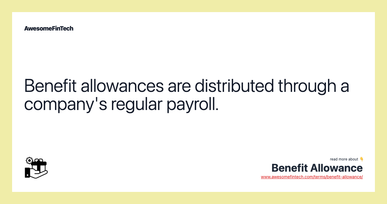 A benefit allowance is money that a company or government agency provides to an employee for a specific purpose, such as transportation, healthcare costs, or a flexible spending account. Benefit allowances administered to employees can be distributed through regular payroll.