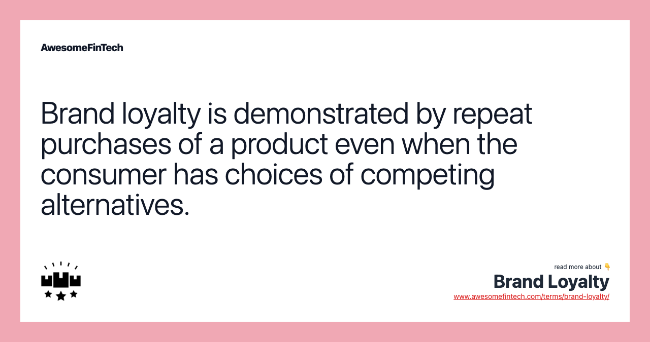 Loyal customers are the ones who will purchase the same brand regardless of convenience or price. These loyal customers have found a product that meets their needs, and they're not interested in experimenting with another brand.