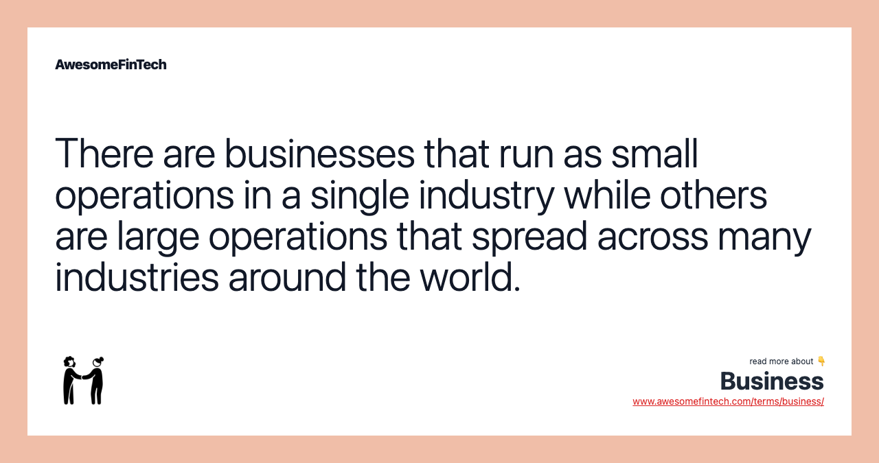 A company may describe its business by communicating the industry in which it operates. For example, the real estate business, advertising business, or mattress production business are industries in which a business can exist.