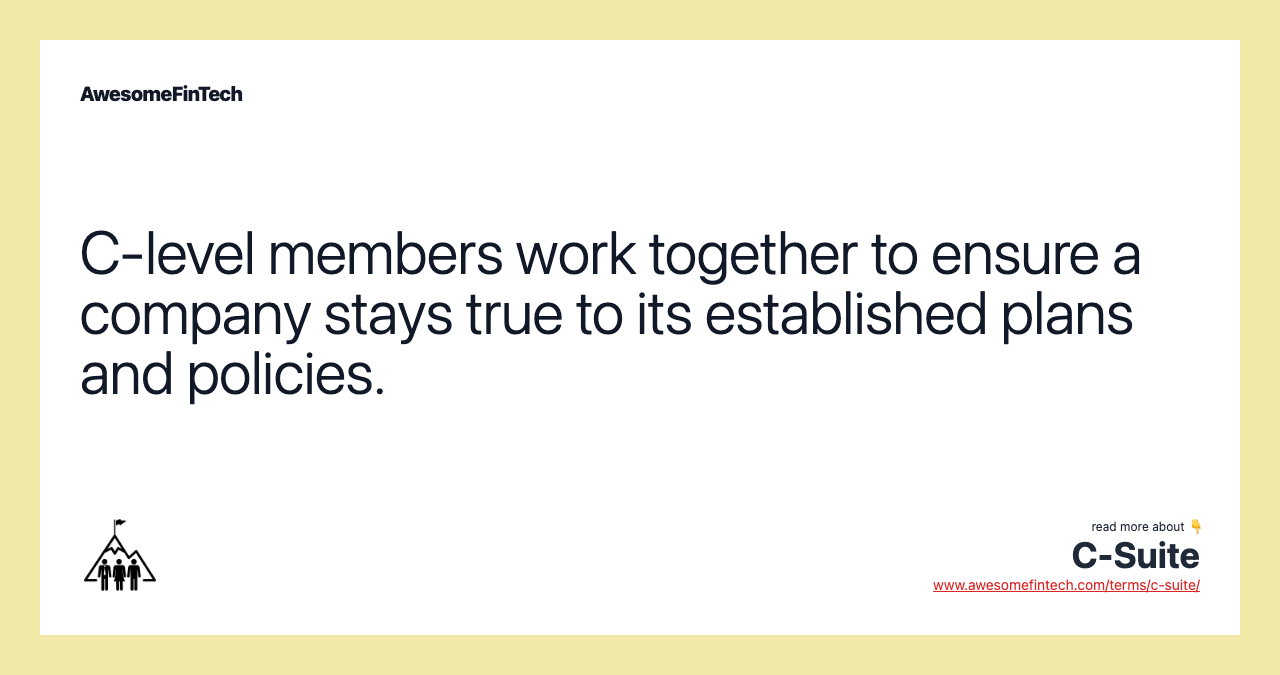 C-level members work in concert to ensure a company’s strategies and operations align with their established plans and policies. With public companies, activities that don't lean toward increased profits for shareholders are routinely corrected under the purview of C-level management personnel.