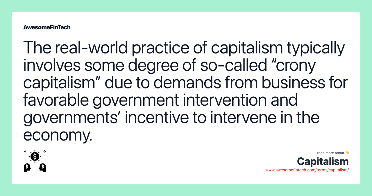 In practice, this is the dominant form of capitalism worldwide due to the powerful incentives both faced by governments to extract resources by taxing, regulating, and fostering rent-seeking activity, and those faced by capitalist businesses to increase profits by obtaining subsidies, limiting competition, and erecting barriers to entry. In effect, these forces represent a kind of supply and demand for government intervention in the economy, which arises from the economic system itself.