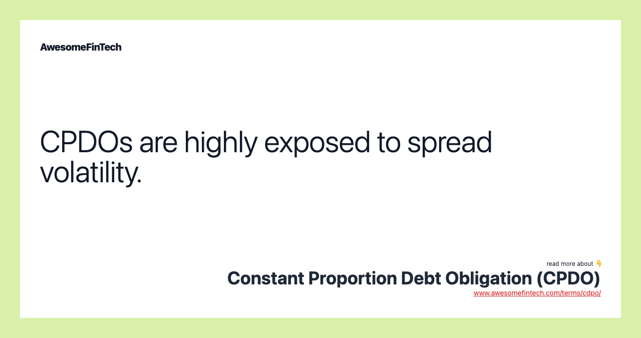 As the given index sheds or adds bonds based on creditworthiness, a CPDO manager will limit default risk by updating their exposure, hence the term “constant proportion.” But the strategy leaves constant proportion debt obligations highly exposed to spread volatility and at the risk of catastrophic loss.