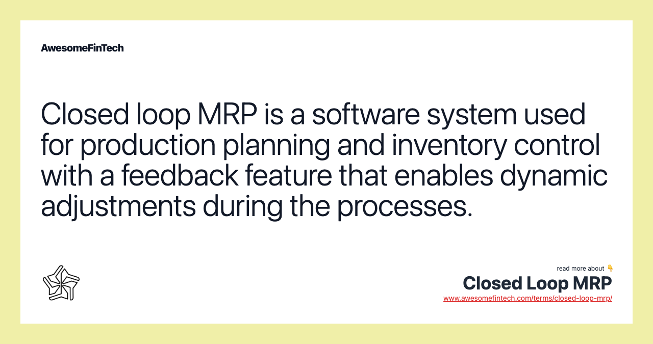 Closed Loop MRP (Manufacturing Resource Planning) is a software system companies use for production planning and inventory control.