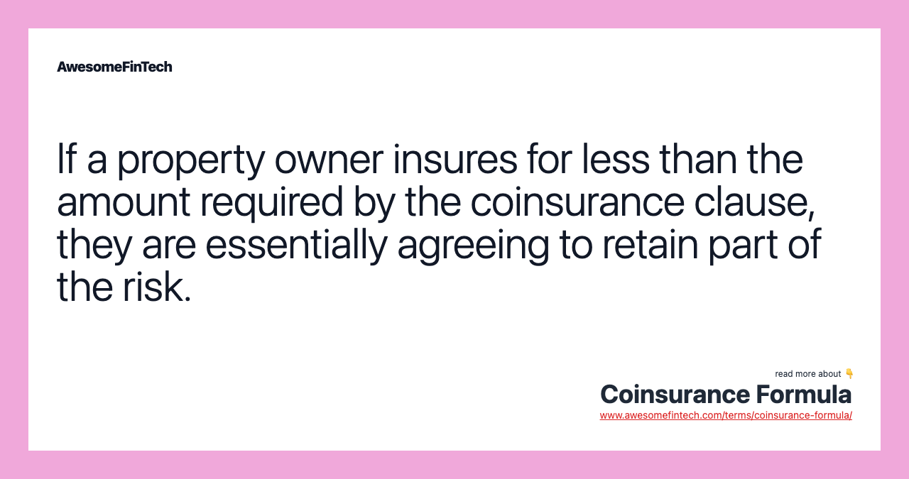 If a property owner insures a property for less than the amount required by the coinsurance clause, they become a "co-insurer" and will share the loss with the insurance company.