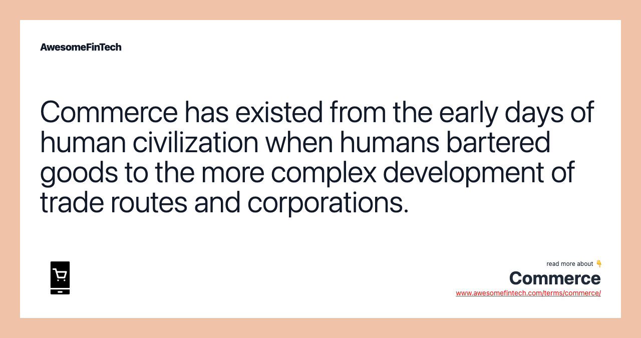 Commerce has existed from the moment humans started exchanging goods and services with one another. From the early days of bartering to the creation of currencies to the establishment of trade routes, humans have sought ways to exchange goods and services and build a distribution process around the process of doing so.
