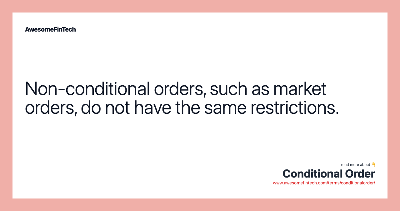 A conditional order is an order that includes one or more specified criteria or limitations on its execution. read more