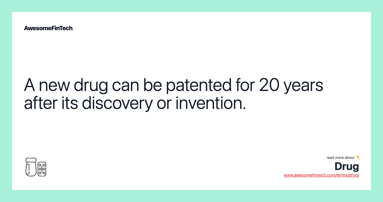 Drugs sold in the U.S. may be name-brand or generic. A name-brand drug can be patented for 20 years after its discovery or invention. Once the patent expires, other manufacturers can produce and market generic equivalents of that drug.
