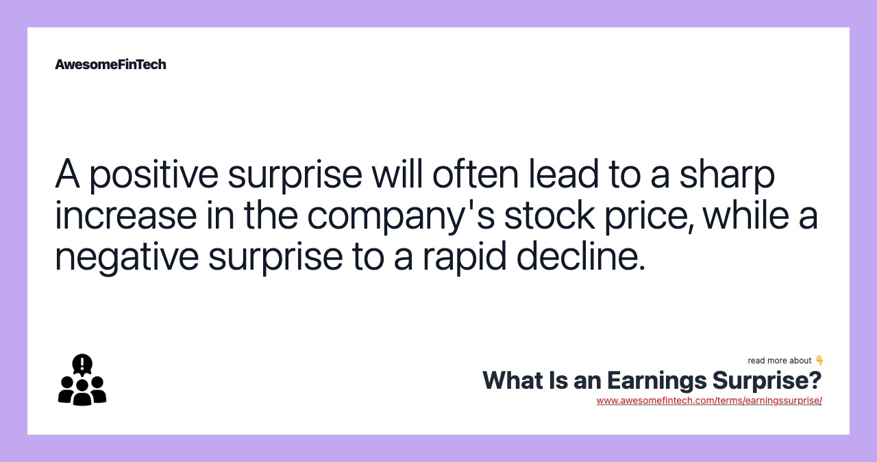 Earnings surprises can have a huge impact on a company's stock price. Several studies suggest that positive earnings surprises not only lead to an immediate hike in a stock's price, but also to a gradual increase over time. Hence, it's not surprising that some companies are known for routinely beating earning projections. A negative earnings surprise will usually result in a decline in share price.