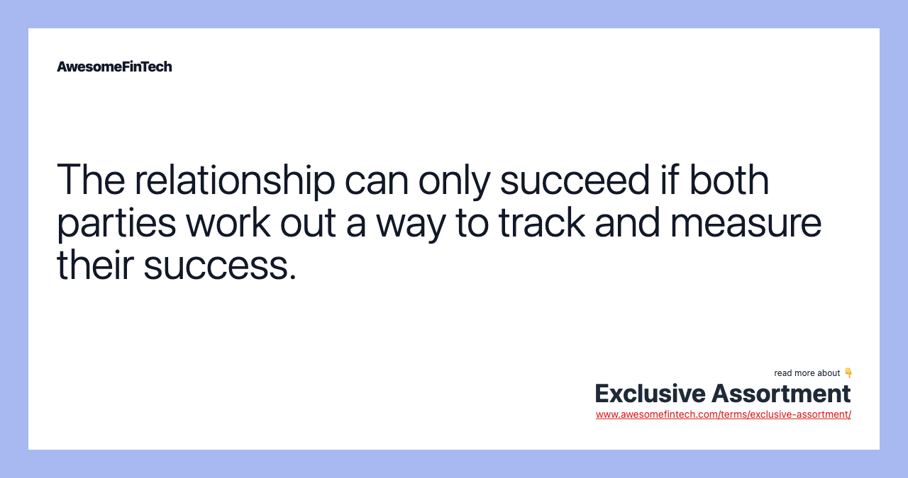 Both the manufacturer and retailer come together through a contractual agreement for exclusivity. The terms and conditions may include factors like pricing and the timeframe for the relationship. Both parties should come to a consensus on tracking and measuring their progress. Setting up a management system with explicit goals ensures financial success and also lays out the expectations of everyone involved. It allows vendors and manufacturers to terminate the agreement if these targets aren't met.