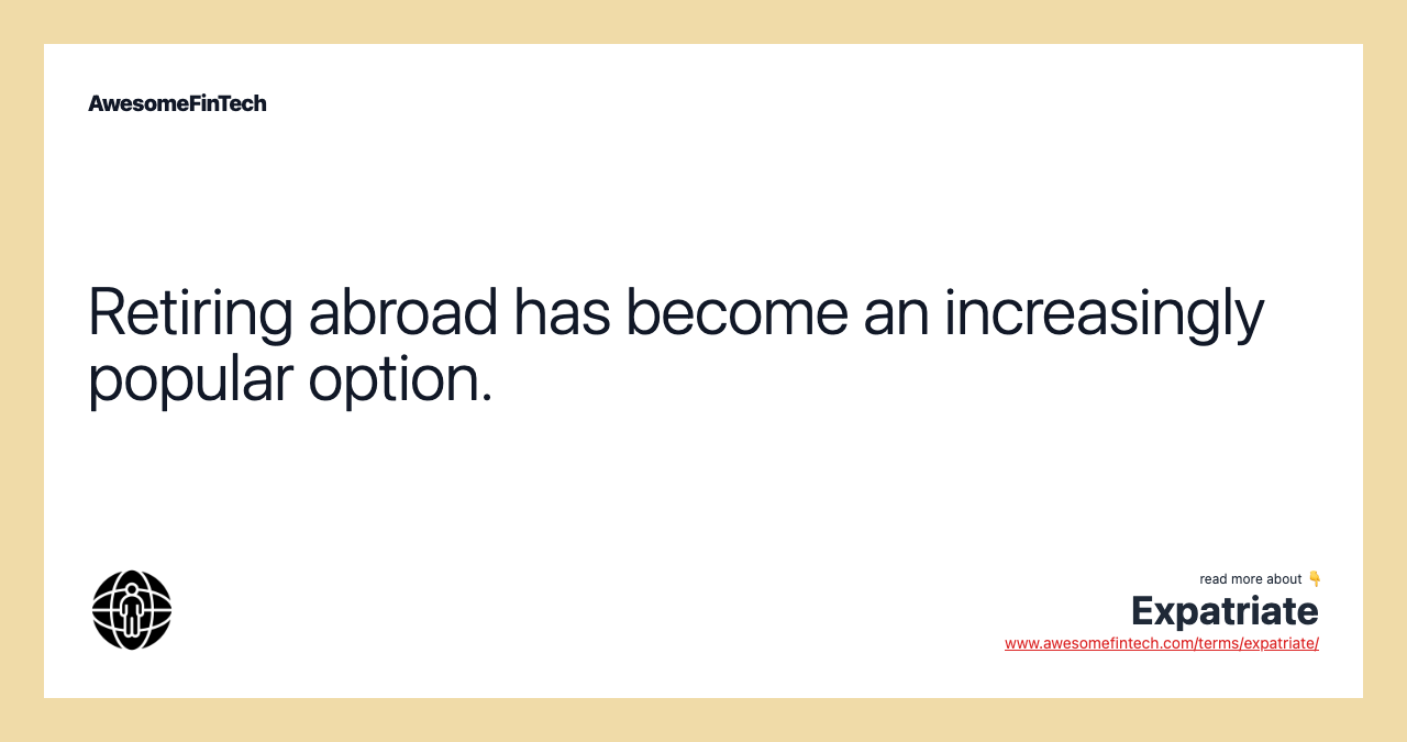 Much expatriation occurs during retirement. While most Americans spend their retirement in the U.S., a growing number are opting to retire overseas. People are motivated to relocate abroad at an older age for several reasons, including lower cost of living, better climate, access to beaches, or some combination of those and other reasons. But it can also be tricky to navigate taxes, long-stay visas, and the language and cultural differences experienced when settling down in other countries.