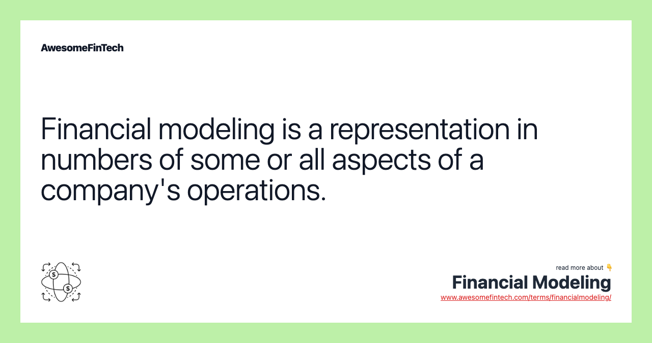 Financial modeling is the process of creating a summary of a company's expenses and earnings in the form of a spreadsheet that can be used to calculate the impact of a future event or decision.