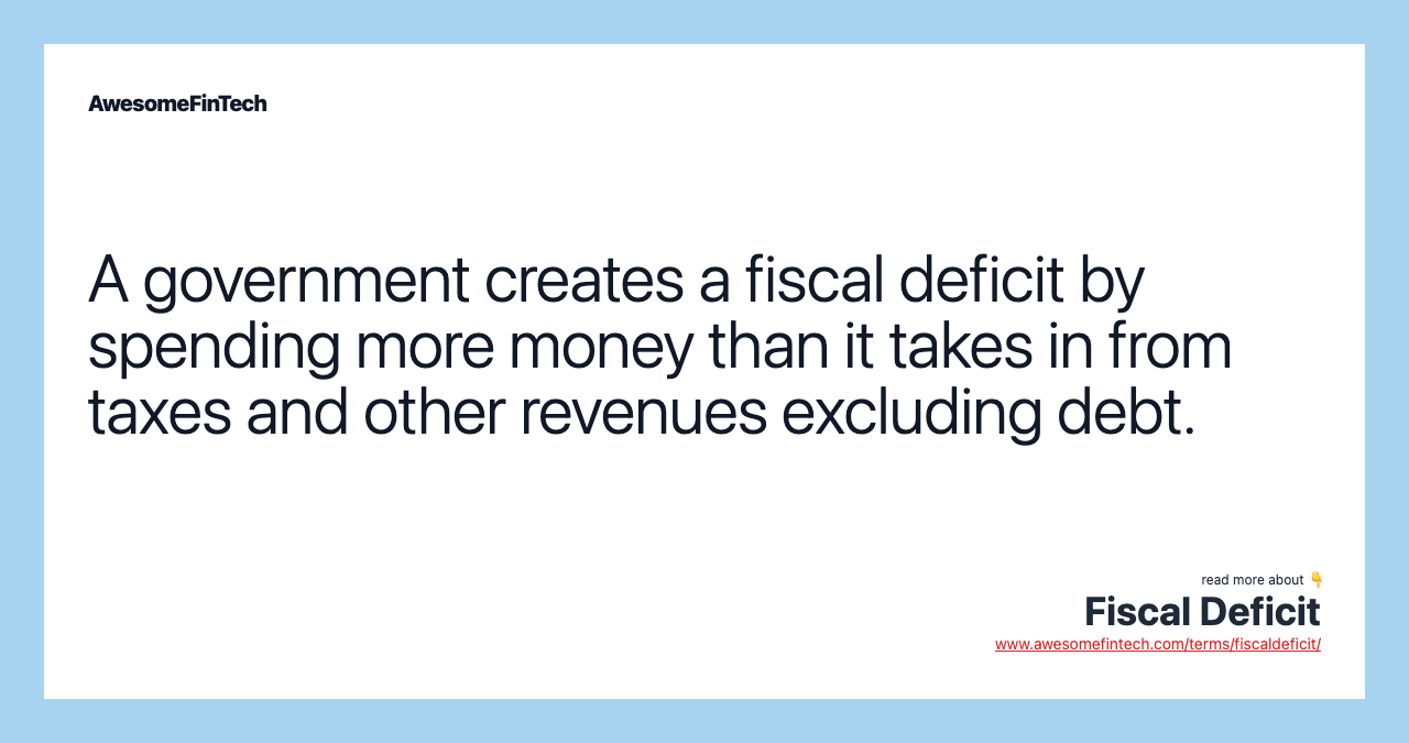 A fiscal deficit is a shortfall in a government's income compared with its spending. The government that has a fiscal deficit is spending beyond its means.