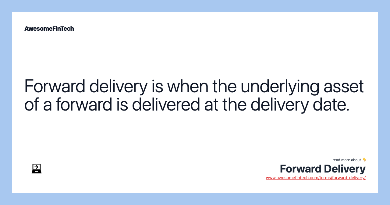 Forward delivery is when the underlying asset is delivered to the receiving party in exchange for payment.