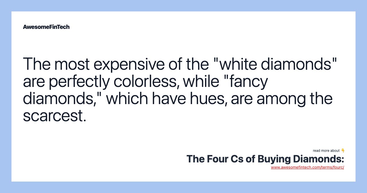 Celebrities, royals, and stars can also influence demand, causing a temporary spike in prices for a particular color. A diamond that is in fashion may lose value when trends change.