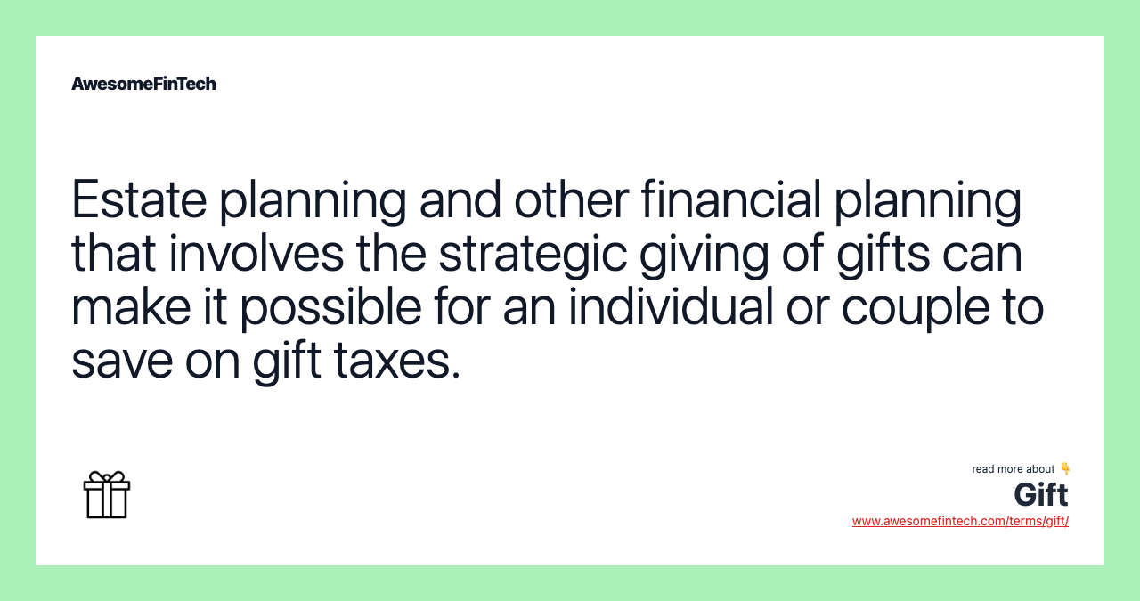 Estate planning can help wealthy individuals avoid paying gift taxes. By making financial gifts strategically, it is possible for an individual or couple to bestow quite a bit of money in financial gifts without incurring a large tax bill.