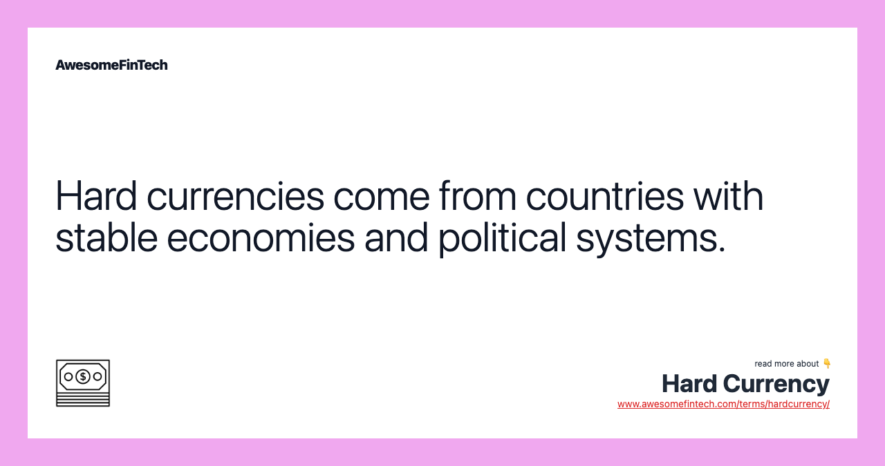 Hard currency refers to money that is issued by a nation that is seen as politically and economically stable. Hard currencies are widely accepted around the world as a form of payment for goods and services and may be preferred over the domestic currency.