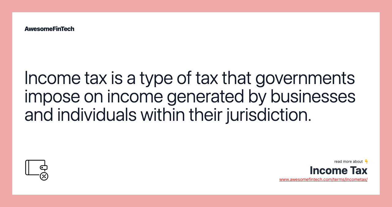 The term income tax refers to a type of tax that governments impose on income generated by businesses and individuals within their jurisdiction. By law, taxpayers must file an income tax return annually to determine their tax obligations.