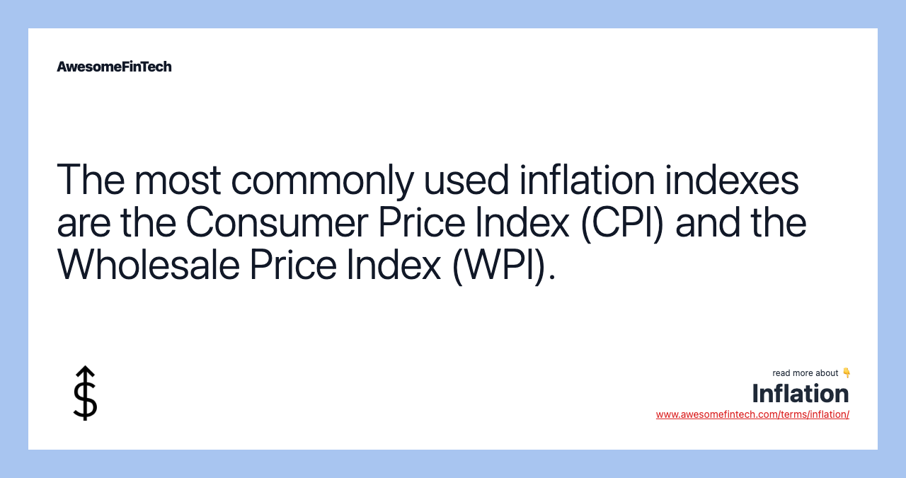 Depending upon the selected set of goods and services used, multiple types of baskets of goods are calculated and tracked as price indexes. The most commonly used price indexes are the Consumer Price Index (CPI) and the Wholesale Price Index (WPI).