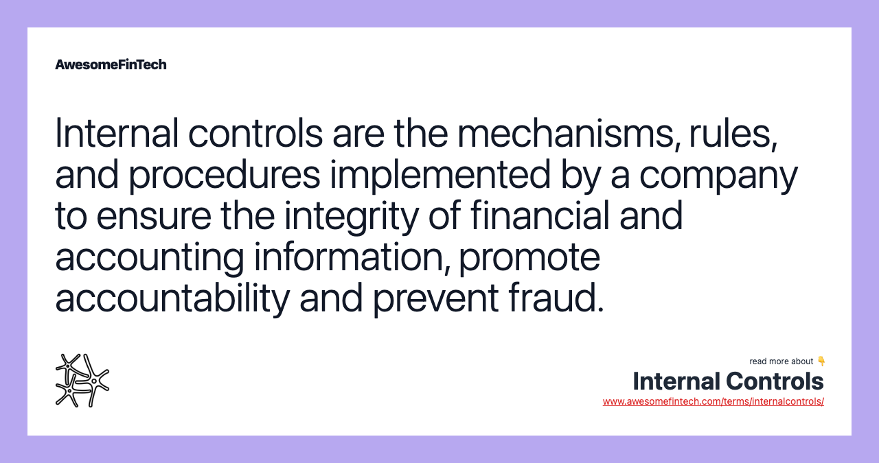 Internal controls are the mechanisms, rules, and procedures implemented by a company to ensure the integrity of financial and accounting information, promote accountability, and prevent fraud.
