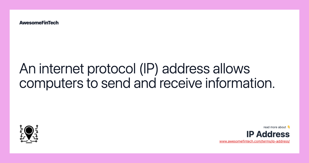 An IP address allows computers to send and receive data over the internet. Most IP addresses are purely numerical, but as internet usage grows, letters have been added to some addresses.