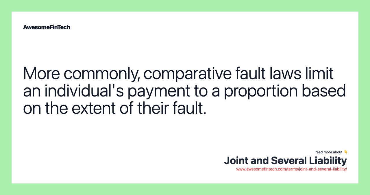 Comparative fault is sometimes called "pure several liability." It is more common in the U.S. than joint and several liability.