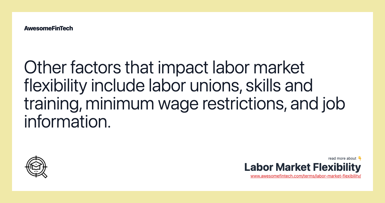 As mentioned earlier, unions, employee skills and training, minimum wage regulations, and job-related information can all have an impact on flexibility in the labor market.