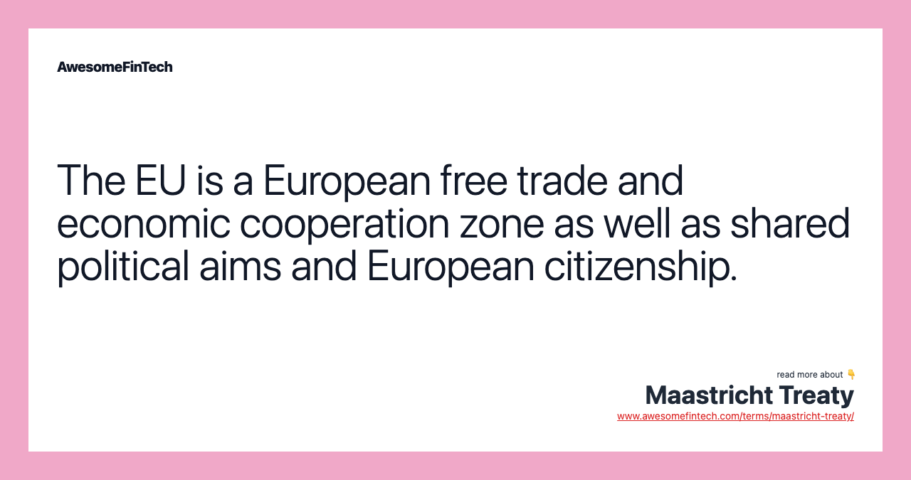 The Maastricht Treaty, known formally as the Treaty on European Union, is the international agreement responsible for the creation of the European Union (EU) signed in 1991 and which became effective in 1993. The treaty created the Euro, which was intended to be the single common currency for the EU and monetary policy set by the European Central Bank (ECB). The Maastricht Treaty was approved by heads of government of the states making up the European Community (EC) in December 1991. The treaty required voters in each country to approve the European Union, which proved to be a hotly debated topic in many areas. The Maastricht Treaty, known formally as the Treaty on European Union, is the international agreement responsible for the creation of the European Union (EU) signed in 1991 and which became effective in 1993. In 1998, the European Central Bank (ECB) was created, and at the end of the year conversion rates between member states' currencies were fixed, a prelude to the creation of the euro currency, which began circulation in 2002. The treaty, in forming the European Union (EU), granted EU citizenship to every person with citizenship of a member state.