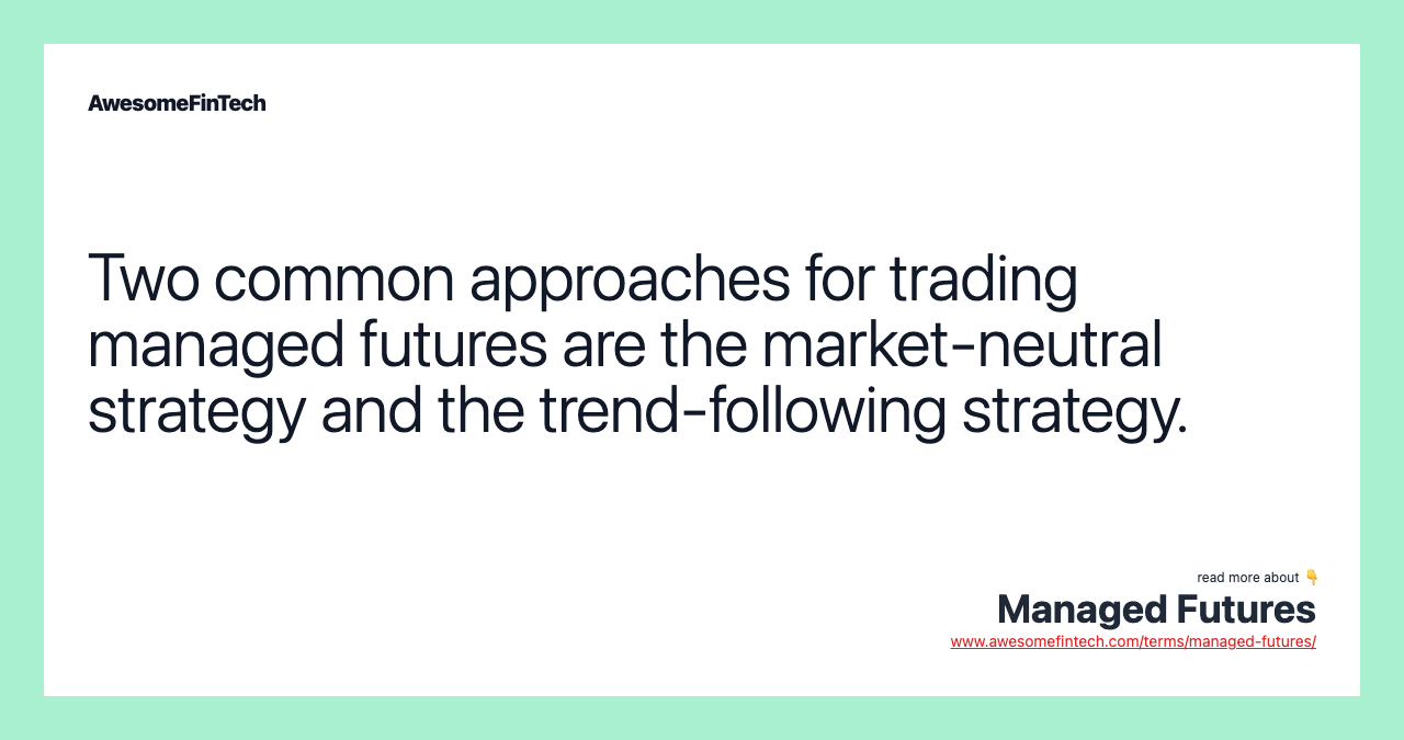 Managed futures refers to an investment where a portfolio of futures contracts is actively managed by professionals. Large funds and institutional investors frequently use managed futures as an alternative to traditional hedge funds to achieve both portfolio and market diversification. Market-neutral strategies look to profit from spreads and arbitrage created by mispricing, whereas trend-following strategies look to profit by going long or short according to fundamentals and/or technical market signals. Managed futures provide this portfolio diversification by offering exposure to asset classes to help mitigate portfolio risk in a way that is not possible in direct equity investments like stocks and bonds. Managed futures are considered an alternative investment and are often used by funds and institutional investors to provide both portfolio and market diversification.