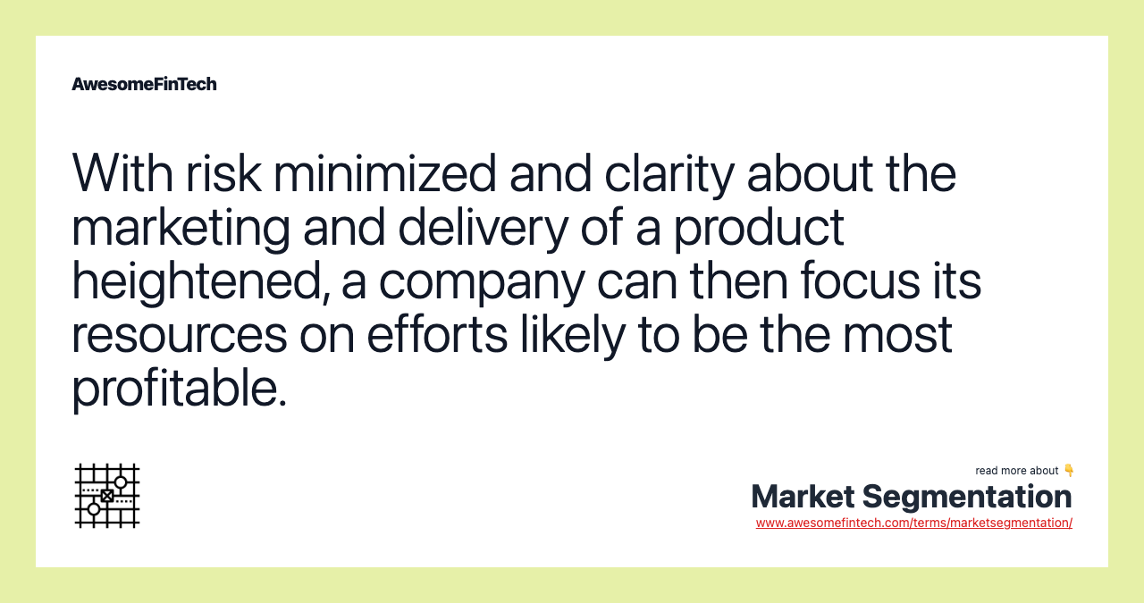 Market segmentation allows a company to increase its overall efficiency by focusing limited resources on efforts that produce the best return on investment (ROI).