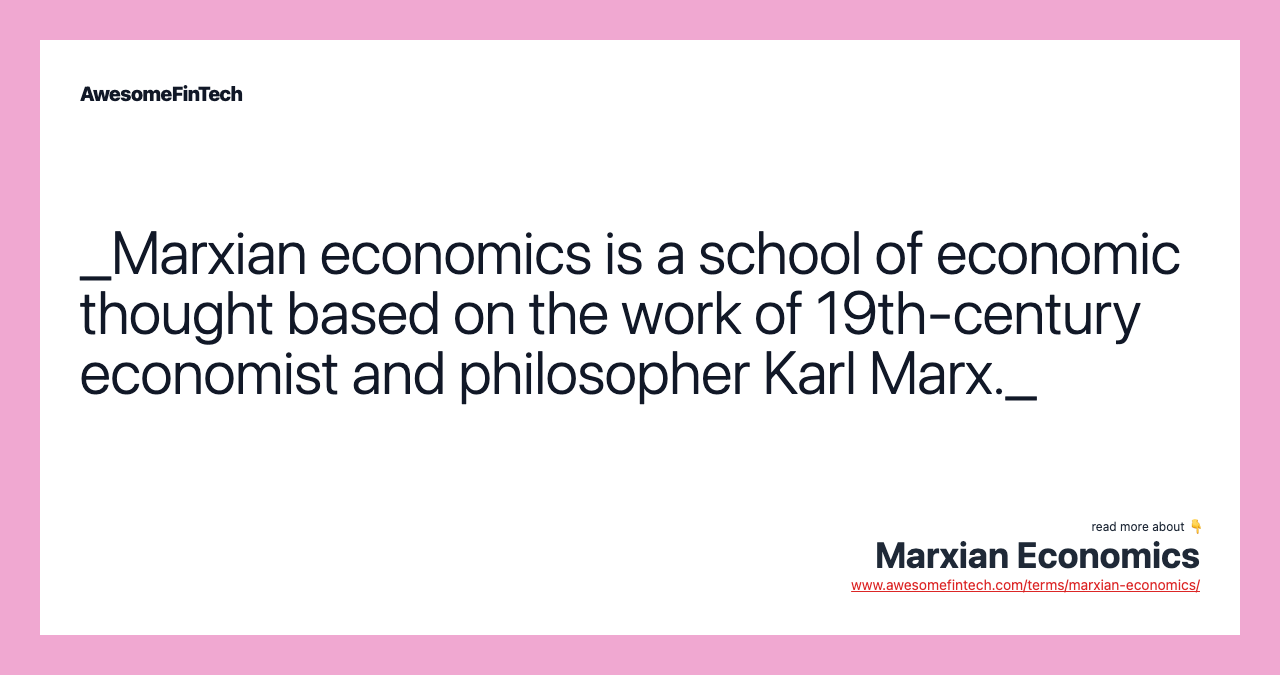 Marxian economics is a school of economic thought based on the work of 19th-century economist and philosopher Karl Marx.