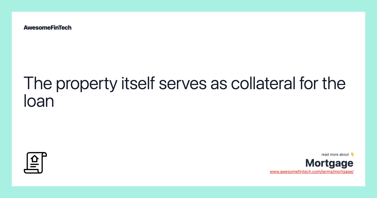 The price of a home is often far greater than the amount of money most households save. As a result, mortgages allow individuals and families to purchase a home by putting down only a relatively small down payment, such as 20% of the purchase price, and obtaining a loan for the balance. The loan is then secured by the value of the property in case the borrower defaults.
