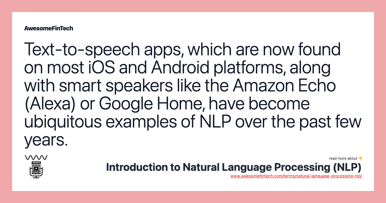 The third step taken by an NLP is text-to-speech conversion. At this stage, the computer programming language is converted into an audible or textual format for the user. A financial news chatbot, for example, that is asked a question like “How is Google doing today?” will most likely scan online finance sites for Google stock, and may decide to select only information like price and volume as its reply.