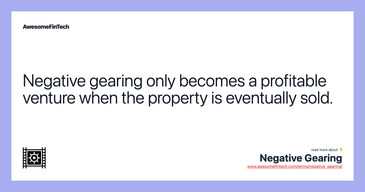 Negative gearing only becomes a profitable venture when the property is eventually sold via capital appreciation. At the time of sale, a prerequisite is that property values must be rising, not falling, or holding steady. If property values are falling or holding steady, the owner might not be able to sell the asset at a high enough price to make up for the losses while the asset was producing insufficient income to cover expenses.