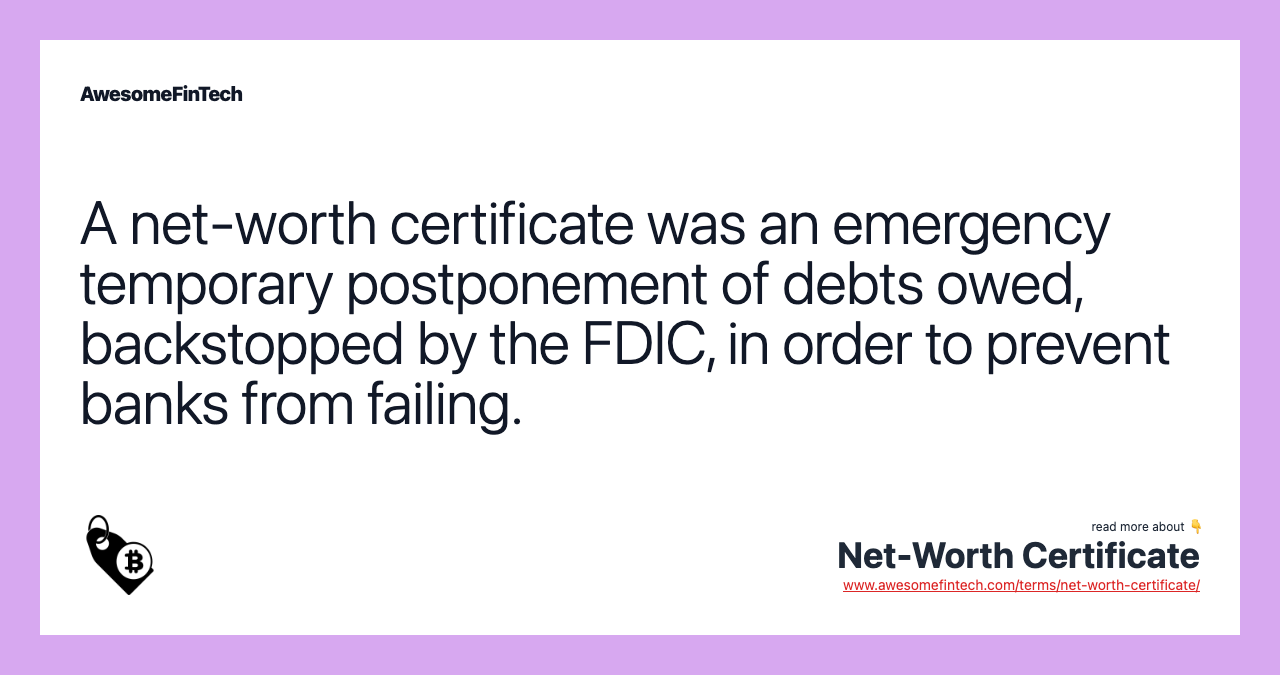 A net-worth certificate was an instrument used by the Federal Deposit Insurance Corporation (FDIC), starting with the passage of the Garn-St. Germain Act in 1982 as part of an effort to save failing banks and thrifts by providing emergency capital.