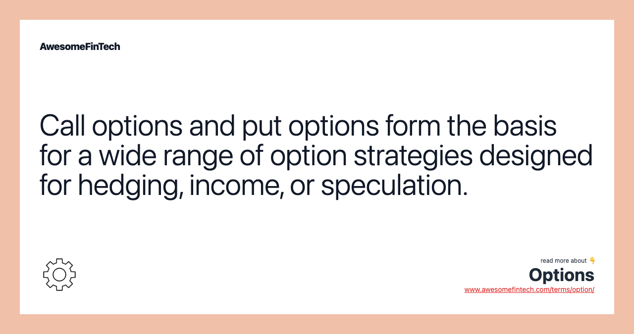 The term option refers to a financial instrument that is based on the value of underlying securities such as stocks. An options contract offers the buyer the opportunity to buy or sell — depending on the type of contract they hold — the underlying asset. Unlike futures, the holder is not required to buy or sell the asset if they decide against it. Each contract will have a specific expiration date by which the holder must exercise their option. The stated price on an option is known as the strike price. Options are typically bought and sold through online or retail brokers.