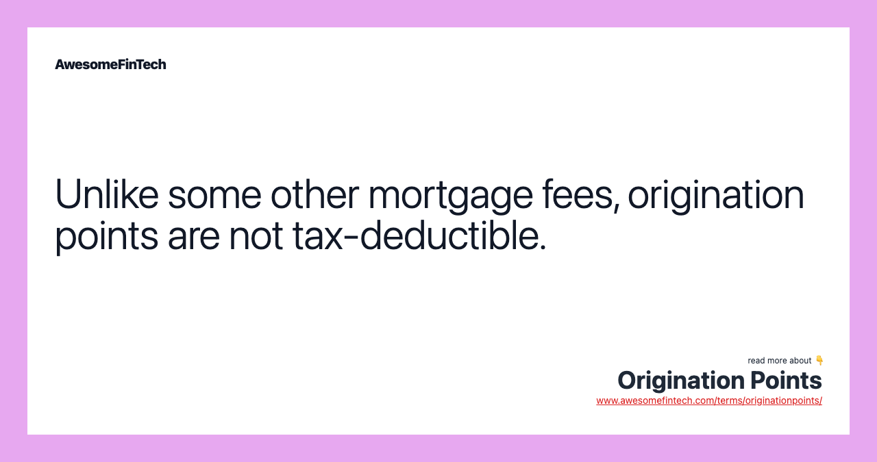 Unlike other types of points (e.g., discount points), origination points are not tax-deductible.