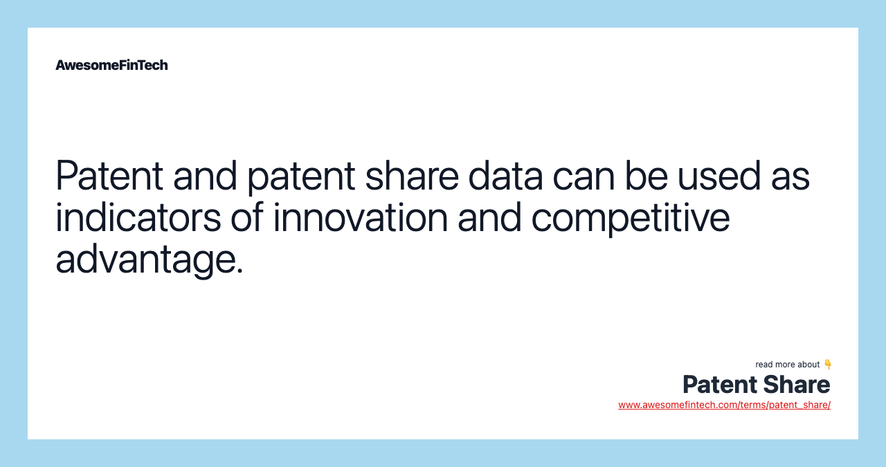Companies that maintain their innovative edge by developing and protecting patents build their competitive advantage. That drives economic outcomes for these companies and their investors. Monitoring patents and patent share can give investors insight into future growth trends and stock performance that might not be reflected in traditional financial metrics.