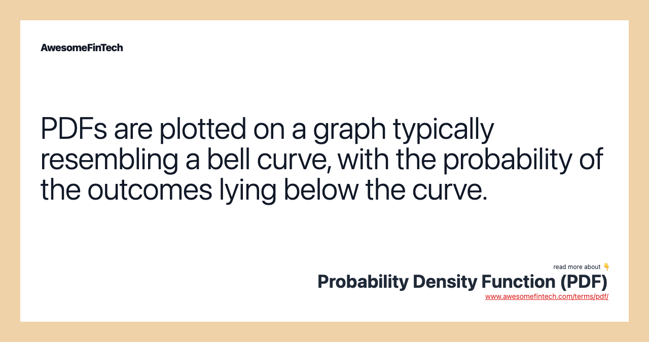 PDFs are used to gauge the risk of a particular security, such as an individual stock or ETF. They are typically depicted on a graph, with a normal bell curve indicating neutral market risk, and a bell at either end indicating greater or lesser risk/reward. A bell at the right side of the curve suggests greater reward, but with lesser likelihood, while a bell on the left indicates lower risk and lower reward.