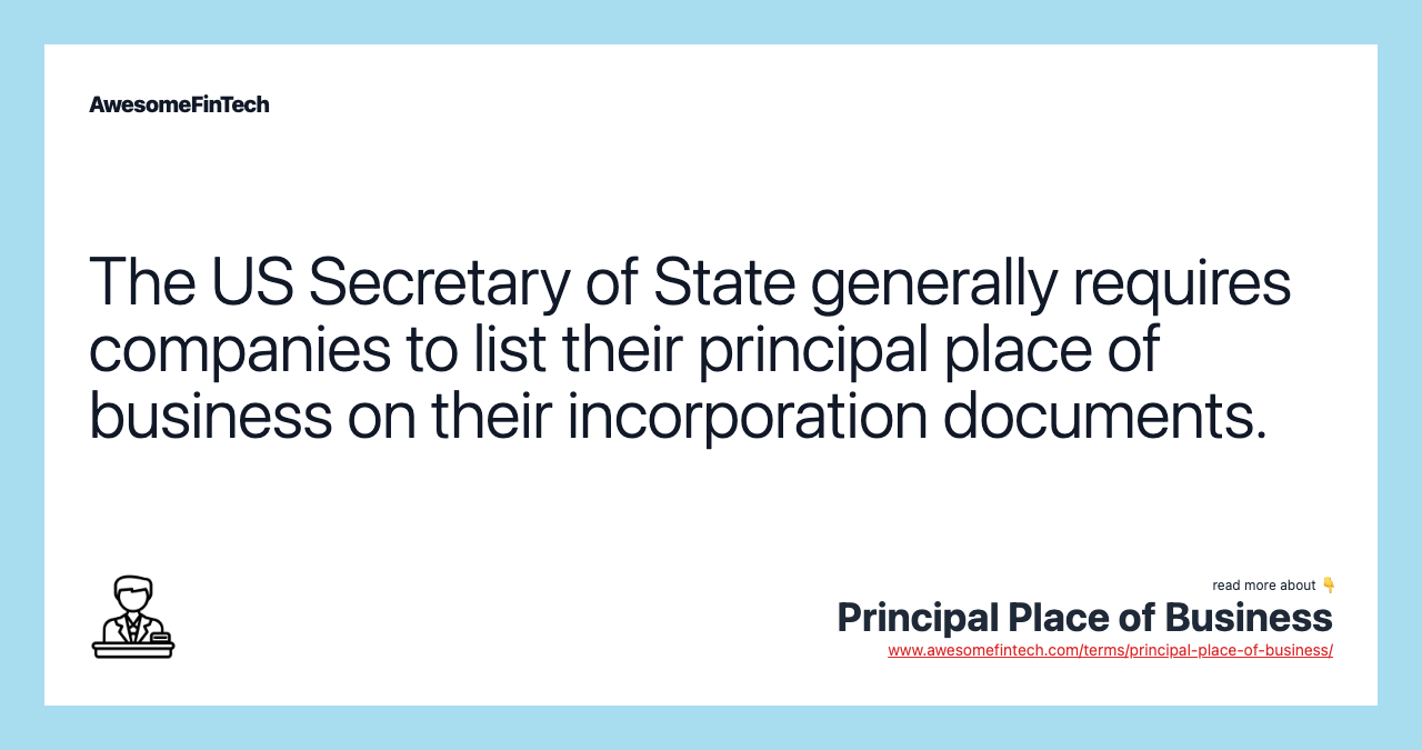 Corporations are usually required to report their principal place of business to the US Secretary of State.